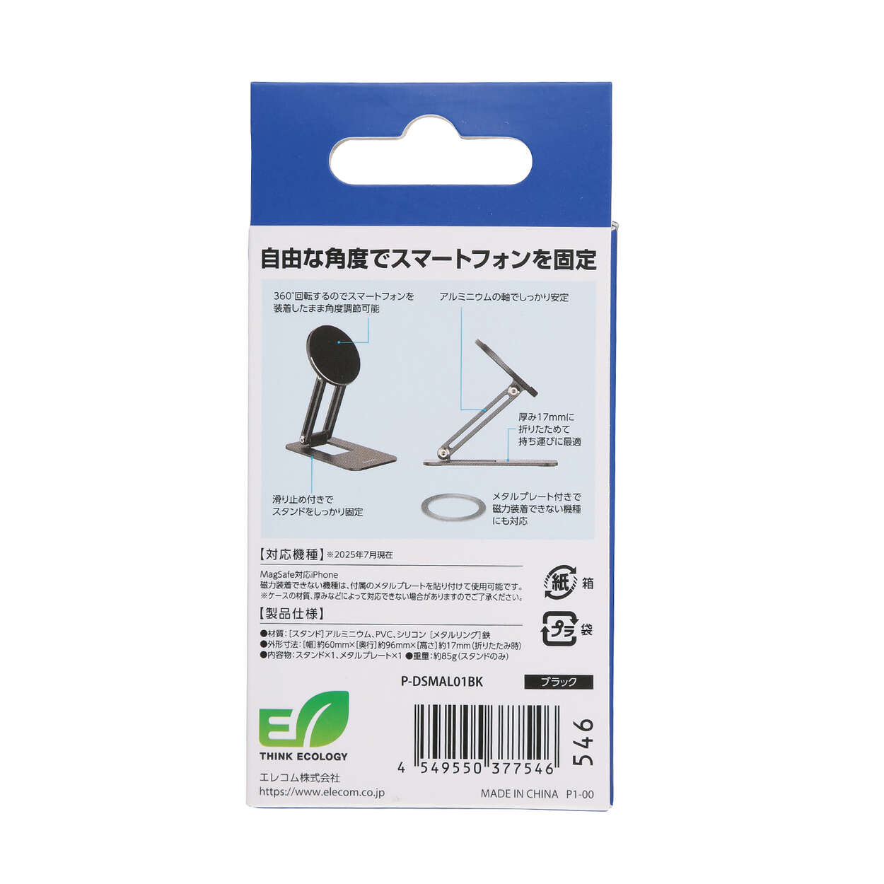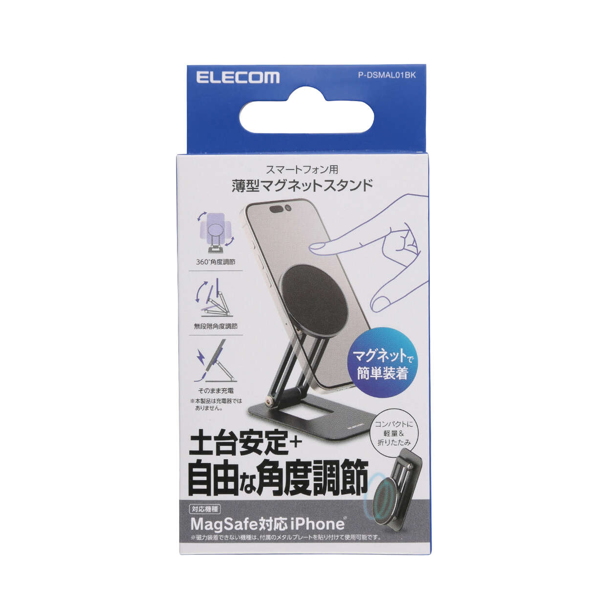 折り畳み式でコンパクトに持ち運べる!マグネットで簡単にスマートフォンの着脱ができる、MAGKEEPシリーズのスマホスタンドです。MagSafe非対応でも使用できるメタルプレート付き。マグネット部分は360度回転し、縦向き・横向きの切り替えもスムーズ。角度調節も可能で、動画視聴やビデオ通話がもっと快適に楽しめます。