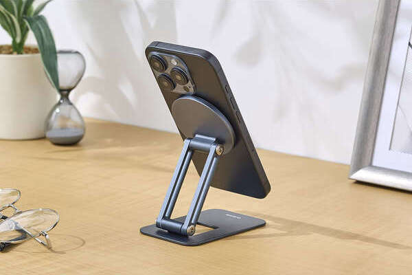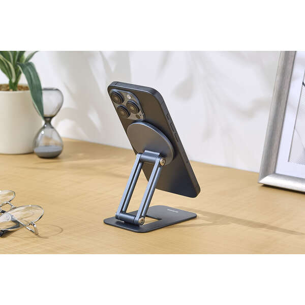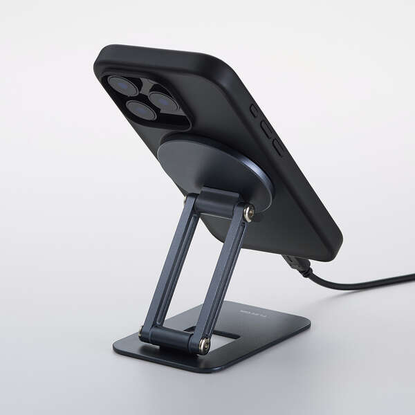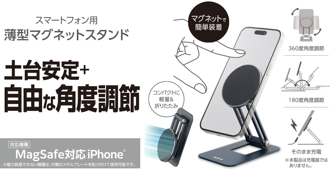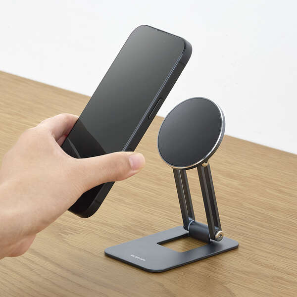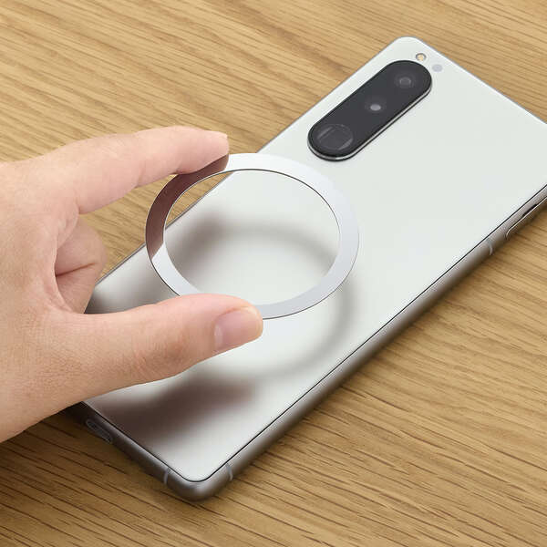 マグネットで簡単にスマートフォンの着脱可能。MagSafe対応スマホケースや付属のメタルプレートと併用することで、MagSafe非対応の端末でも使用できます。