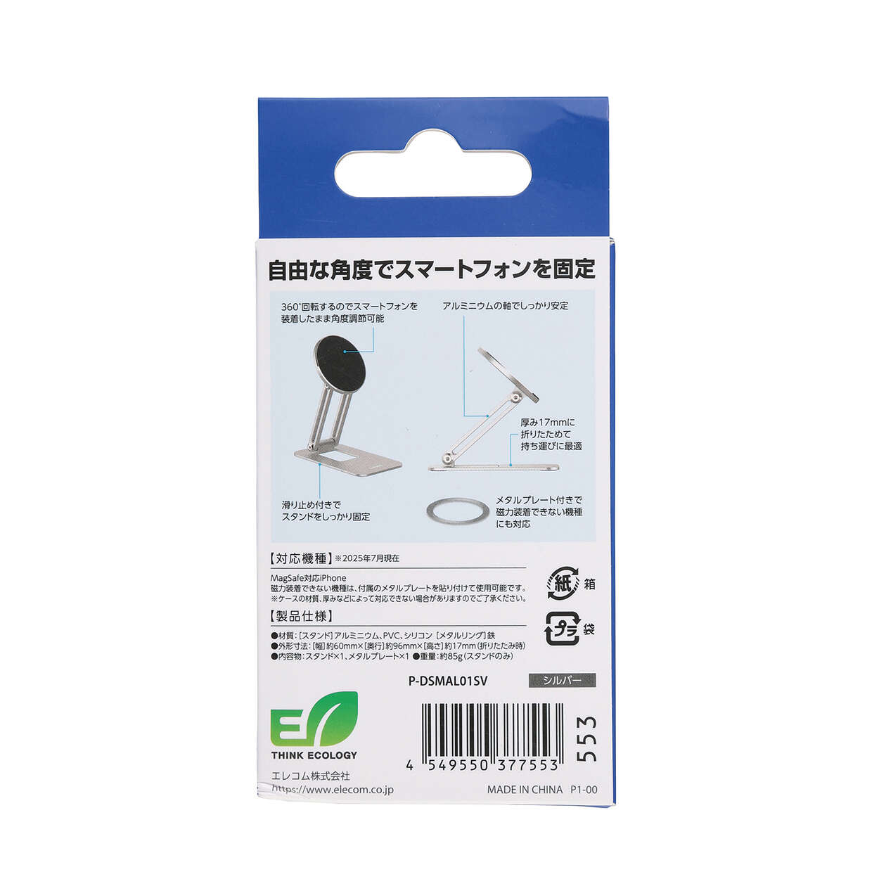 折り畳み式でコンパクトに持ち運べる!マグネットで簡単にスマートフォンの着脱ができる、MAGKEEPシリーズのスマホスタンドです。MagSafe非対応でも使用できるメタルプレート付き。マグネット部分は360度回転し、縦向き・横向きの切り替えもスムーズ。角度調節も可能で、動画視聴やビデオ通話がもっと快適に楽しめます。