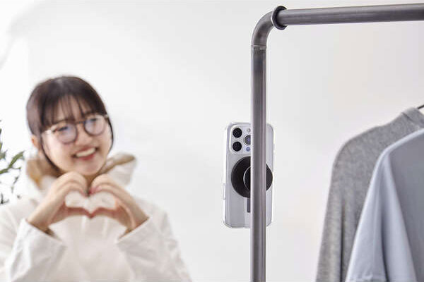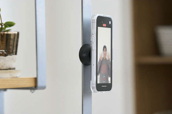 磁石が付く場所などにスマートフォンを簡単に固定可能。すぐに撮影できて、使用後の取り外しもスムーズです。