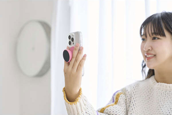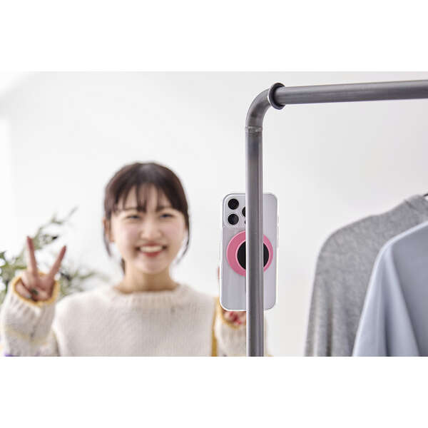 思い通りに撮影を楽しもう!磁石が付く場所などにスマートフォンを簡単に固定できる、マグネット式スマホスタンド”モバピタselfie”です。両手が自由になるため、自撮りはもちろん、ダンス動画や全身写真の撮影にもぴったり。くっつけたままでも違和感なく、スマホグリップとしても使えます。