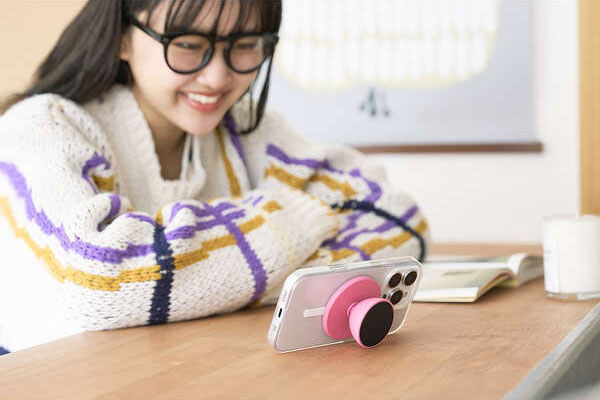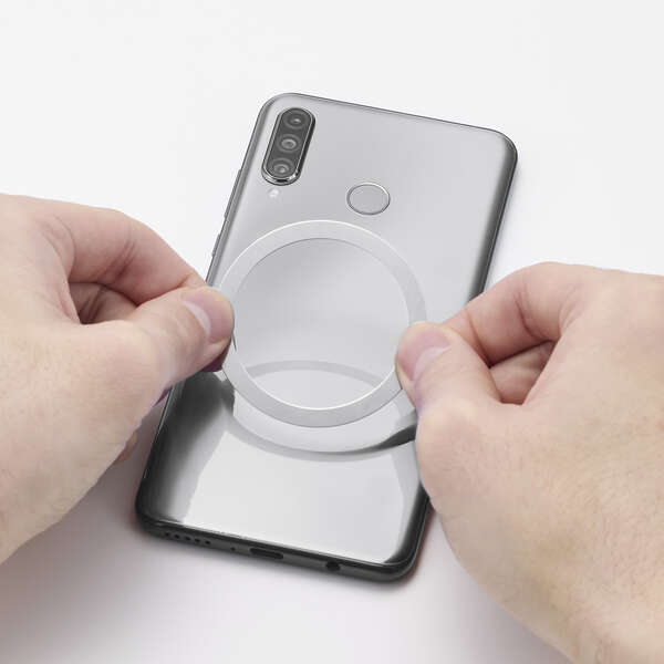 MagSafe対応スマートフォンの背面に、マグネットで簡単に着脱できます。