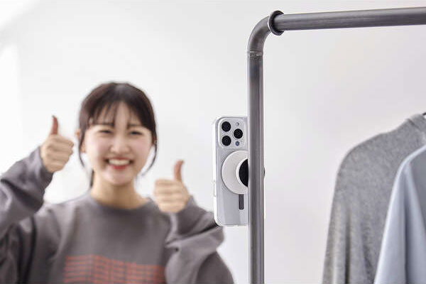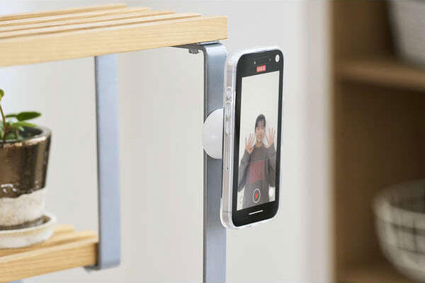 磁石が付く場所などにスマートフォンを簡単に固定可能。すぐに撮影できて、使用後の取り外しもスムーズです。