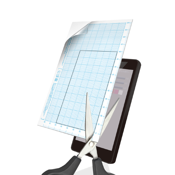 - りけいシートに方眼目を印刷しており、ぴったりとサイズを確認可能です。サイズ確認に便利なアプリも用意しています。