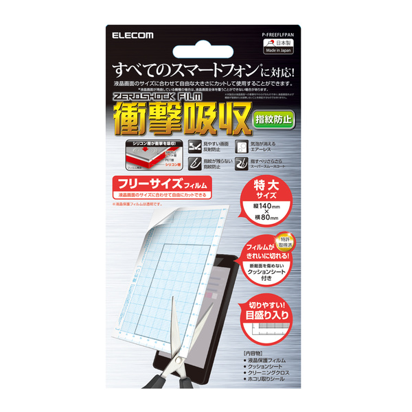 - スマートフォンの液晶画面をキズや汚れから守る、フリーカットタイプの液晶保護フィルム。
