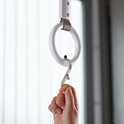 S字の形が特徴的なフック型マルチタッチツールです。大きなフック状になってる部分でつり革にかけたりドアノブを引いたり出来ます。
