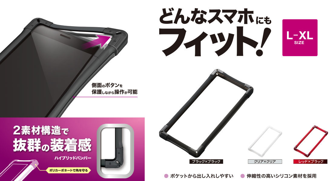 普通サイズから大きめサイズのスマートフォンに装着可能なL~XLサイズです。