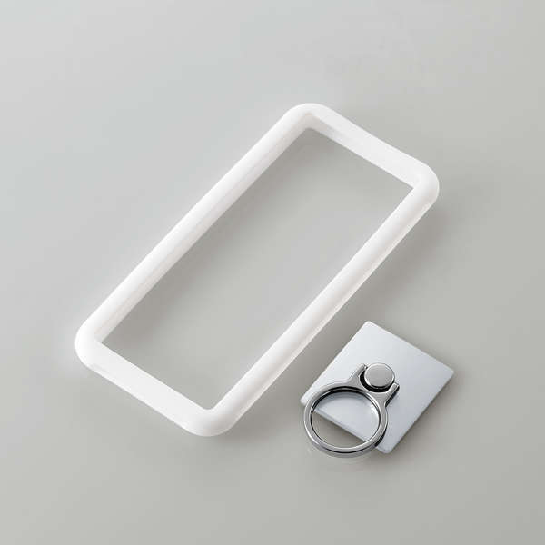 シリコンバンパーのカラーに合わせたスマホリング付きです。スマホリングは、背面に貼り付けて落下を防ぎます。