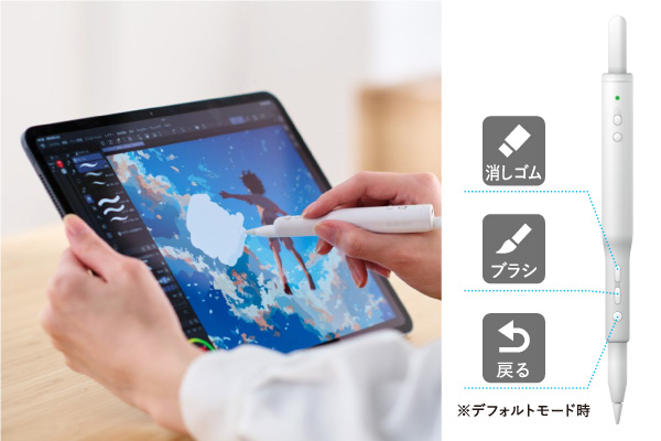 デフォルトモードでは「戻る」「ブラシ」「消しゴム」が設定されています。