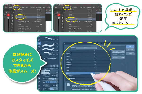 3つのショートカットキーを使うことで、頻繁に使用するツールやメニューを片手で素早く操作でき、作業効率が向上します。