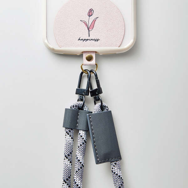 スマートフォンとケースの間に挟むだけでストラップホールを追加できる、1口タイプです。お使いのスマホケースにストラップホールがなくても、ケースのケーブル穴に通すだけで使用できます。
