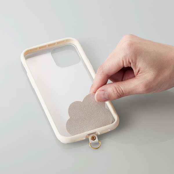 雲をモチーフにあしらい、クリアケースに映えるデザインのストラップホールシート