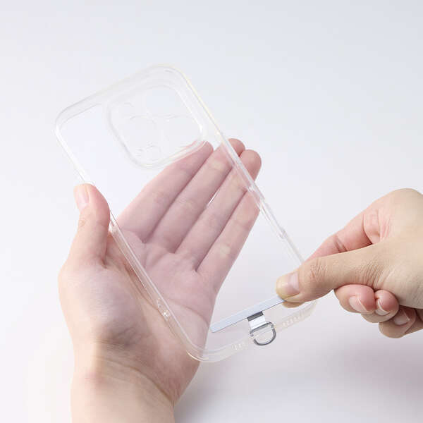 お使いのスマホケースにストラップホールがなくても、ケースのスピーカー穴に通すだけで使用できます。