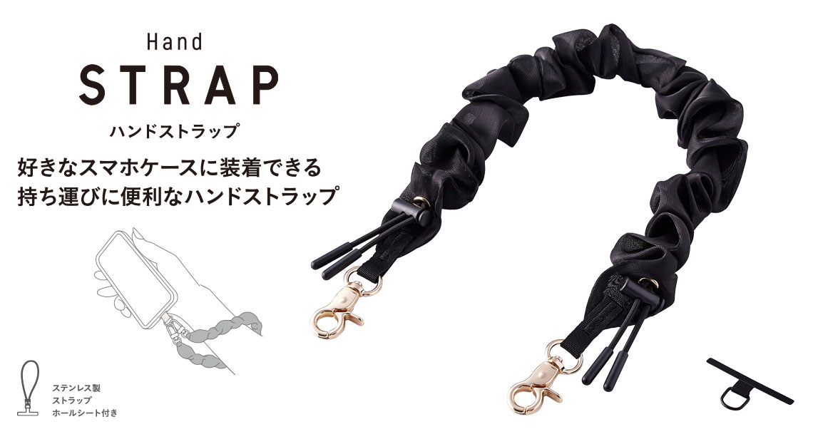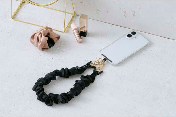 くしゅくしゅとした立体感と透け感のある生地が、大人の抜け感を演出するハンドストラップです。手首や腕から提げて持ち歩けるので、両手がふさがらずいつでもサッとスマートフォンの操作ができます。手元にほどよい存在感を添えながらも軽量で、持ち運びやすい仕様です。