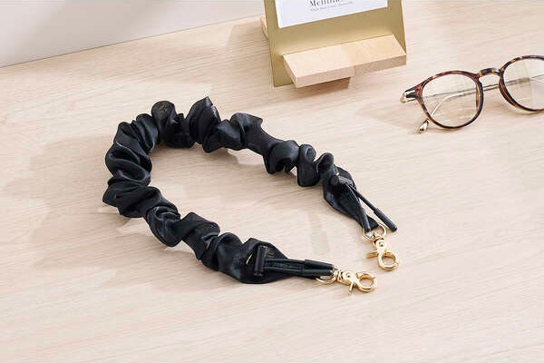 くしゅくしゅとした立体感とミニマルなデザインが目を引く、アクセサリー感覚で楽しめるハンドストラップです。