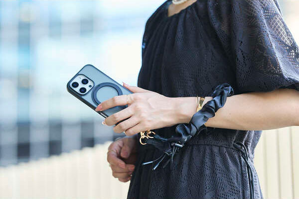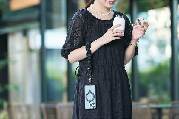 手首や腕から提げて持ち歩けるので、両手がふさがらずいつでもサッとスマートフォンの操作ができます。