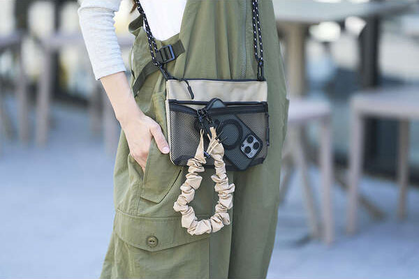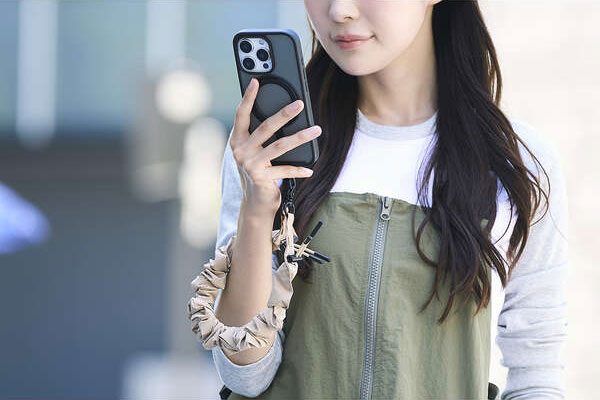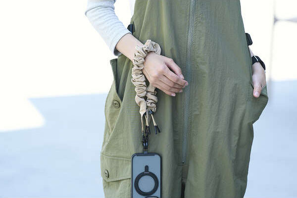 手首や腕から提げて持ち歩けるので、両手がふさがらずいつでもサッとスマートフォンの操作ができます。