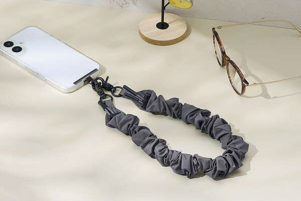 くしゅくしゅとした立体感とミニマルなデザインが目を引く、アクセサリー感覚で楽しめるハンドストラップです。