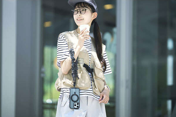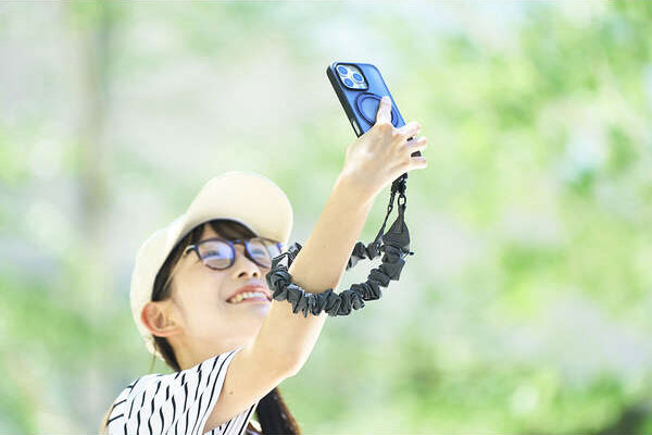 手首や腕から提げて持ち歩けるので、両手がふさがらずいつでもサッとスマートフォンの操作ができます。