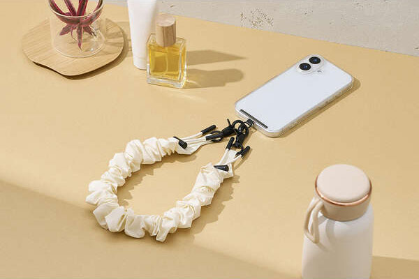 くしゅくしゅとした立体感が目を引く、ミニマルかつスポーティーな印象のハンドストラップです。手首や腕から提げて持ち歩けるので、両手がふさがらずいつでもサッとスマートフォンの操作ができます。手元にほどよい存在感を添えながらも軽量で、持ち運びやすい仕様です。