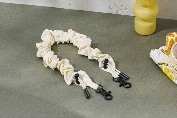 くしゅくしゅとした立体感とミニマルなデザインが目を引く、アクセサリー感覚で楽しめるハンドストラップです。