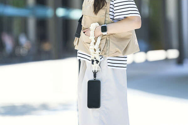 手首や腕から提げて持ち歩けるので、両手がふさがらずいつでもサッとスマートフォンの操作ができます。