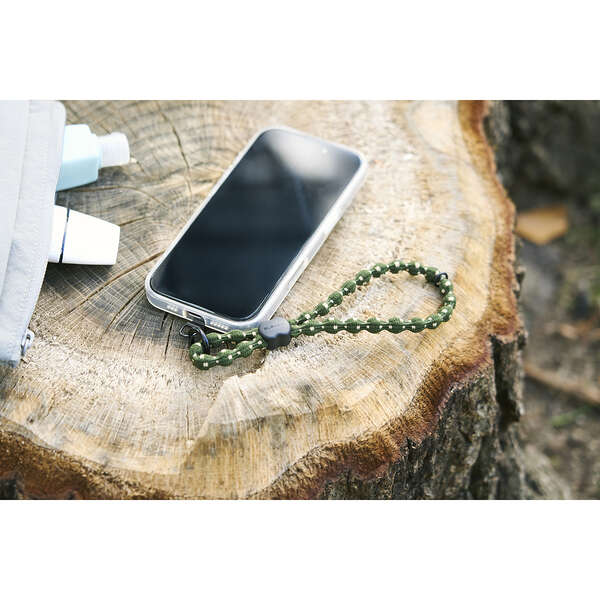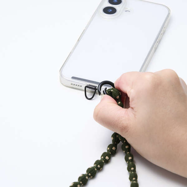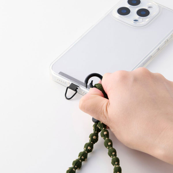 手首や腕から提げて持ち歩けるので、両手がふさがらずスマホ操作もスムーズ。落下、盗難、紛失防止にもなります。