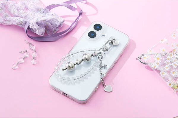 光を受けてきらめくガラスビーズが、アクセントとしても映えるチャームストラップです。毎日持ち歩くスマホを、自分好みに手軽にカスタマイズできるアイテムで、気分に合わせておしゃれを楽しめます。スマホケースにストラップホールがなくても使える、強力粘着テープ付きのハート型チャームホルダーが付属しています。