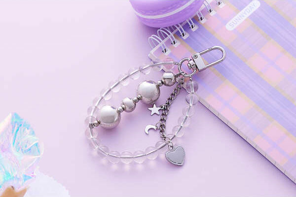 透き通るようなガラスビーズの美しさが際立つ、繊細なチャームストラップです。