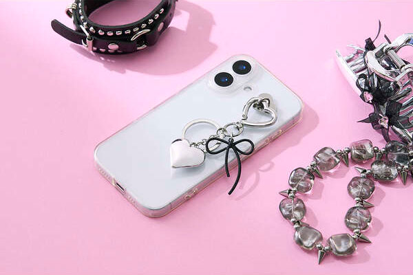 ブラックリボンの落ち着いた質感が、日常使いにほどよくなじむチャームストラップです。毎日持ち歩くスマホを、自分好みに手軽にカスタマイズできるアイテムで、気分に合わせておしゃれを楽しめます。スマホケースにストラップホールがなくても使える、強力粘着テープ付きのハート型チャームホルダーが付属しています。