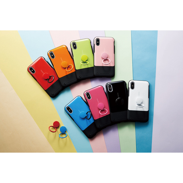 ケースとコーディネートしやすいシンプル&カラフルデザイン。 背面に貼りつけてスマートフォンの落下を防ぐ、やわらかな丸みのあるフォルムでケースに馴染みやすいフィンガーリング。