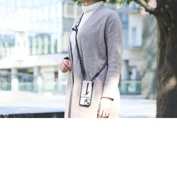 肩から掛けられ、バッグやポケットから取り出さなくてもすぐにスマートフォンの操作ができるカードケース付きショルダーストラップです。