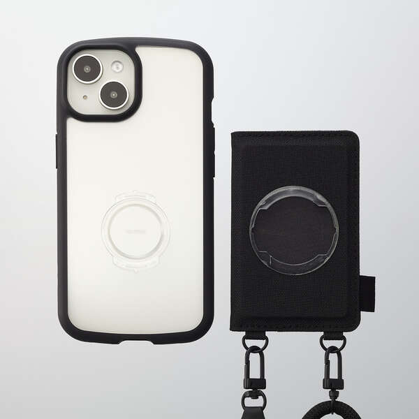 肩から掛けられ、バッグやポケットから取り出さなくてもすぐにスマートフォンの操作ができるカードケース付きショルダーストラップです。