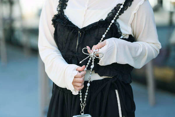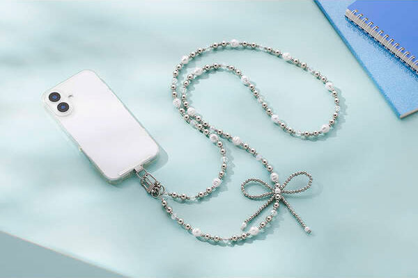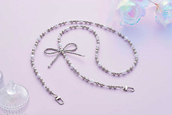 存在感のある大きなリボンがコーデにさりげなく彩りをプラスするビーズショルダーストラップです。両手が空いて、普段のお出かけはもちろん、お仕事や旅行などのイベント時にも活躍。落下、盗難、紛失防止にもなります。耐久性の高いステンレスワイヤーを使用しており、見た目の華やかさと実用性を兼ね備えた仕様です。
