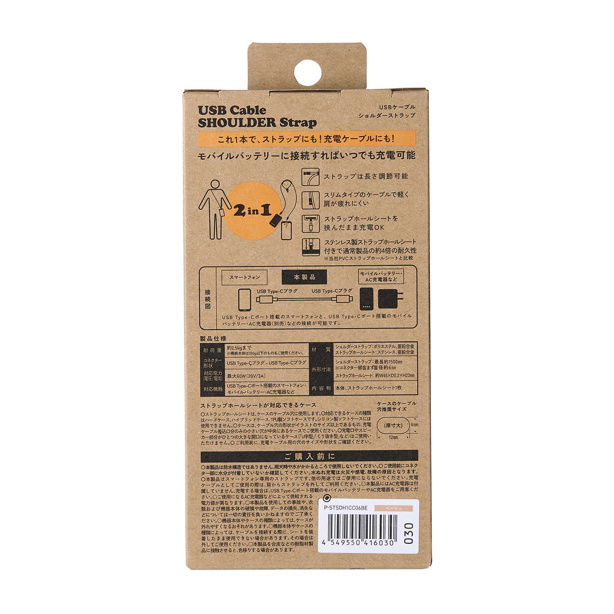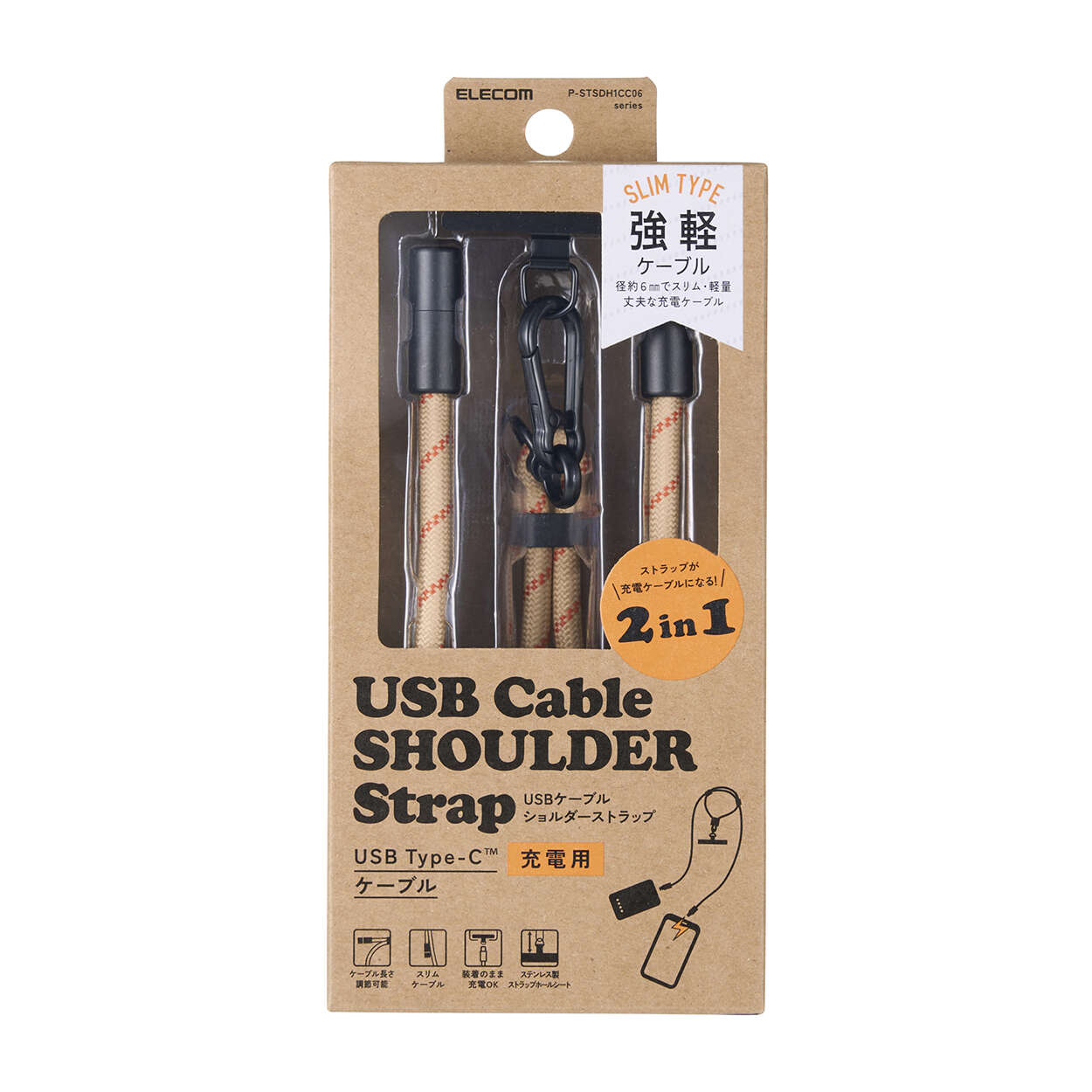 スマートフォン用ストラップとしても、充電ケーブルとしても使える便利な2in1仕様のUSBケーブルショルダーストラップです。長さ調節が可能な丸ひもタイプで、毎日使いにちょうどいい軽さ。USB Type-C(TM)に対応し、最大60W(20V/3A)の送電が可能。普段のお出かけはもちろん、仕事や旅行にも活躍します。