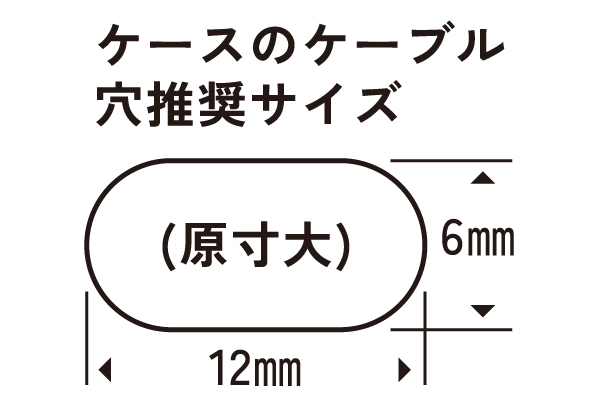 ケースは、ケーブル穴がケース底面の中央にあるもので、幅12mm・高さ6mm以上開口しているものが推奨です。ケーブル穴部分が大きく開口しているケースでの使用は推奨しません。