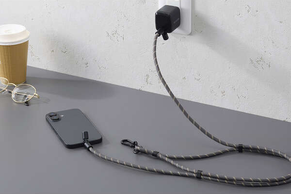 スマートフォン用ストラップとしても、充電ケーブルとしても使える便利な2in1仕様のUSBケーブルショルダーストラップです。長さ調節が可能な丸ひもタイプで、毎日使いにちょうどいい軽さ。USB Type-C(TM)に対応し、最大60W(20V/3A)の送電が可能。普段のお出かけはもちろん、仕事や旅行にも活躍します。