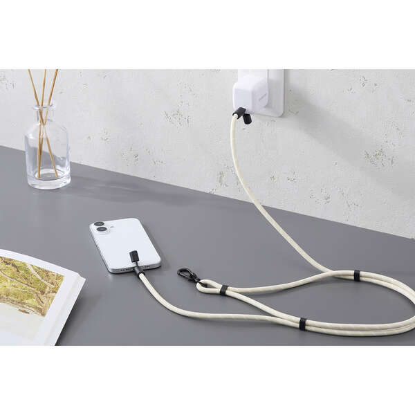 スマートフォン用ストラップとしても、充電ケーブルとしても使える便利な2in1仕様のUSBケーブルショルダーストラップです。長さ調節が可能な丸ひもタイプで、毎日使いにちょうどいい軽さ。USB Type-C(TM)に対応し、最大60W(20V/3A)の送電が可能。普段のお出かけはもちろん、仕事や旅行にも活躍します。
