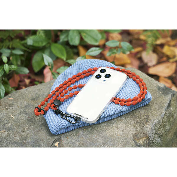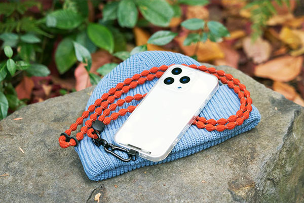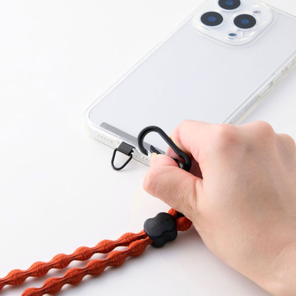 取り外しやすいカラビナ付きで、使わないときはスマートフォンを簡単に取り外せます。
