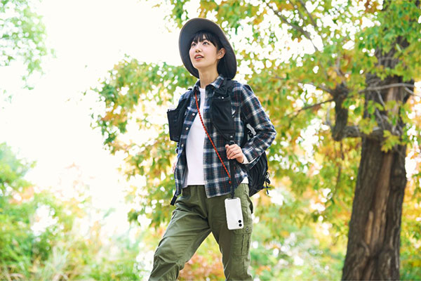 斜め掛けにできるので、両手が空き、普段のお出かけはもちろん、お仕事や旅行などのイベント時にも便利。落下や盗難、紛失防止にも役立ちます。