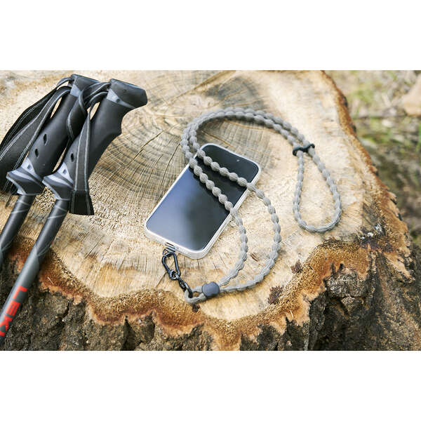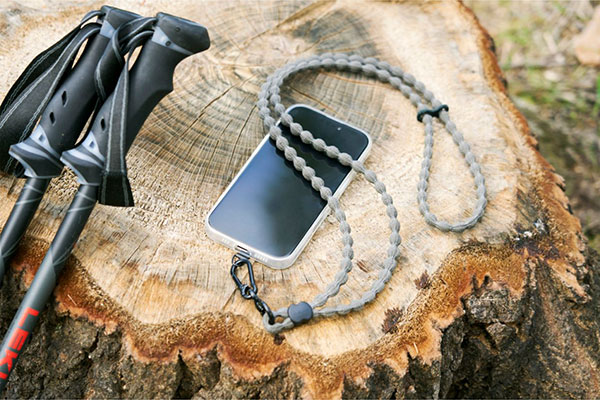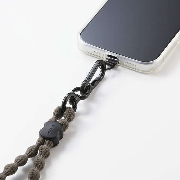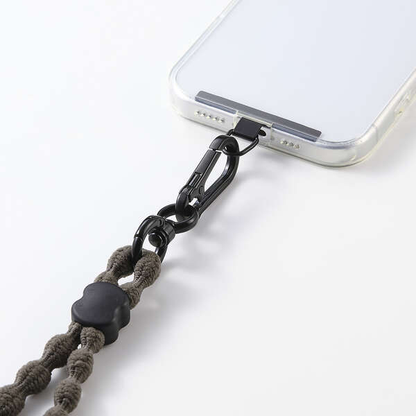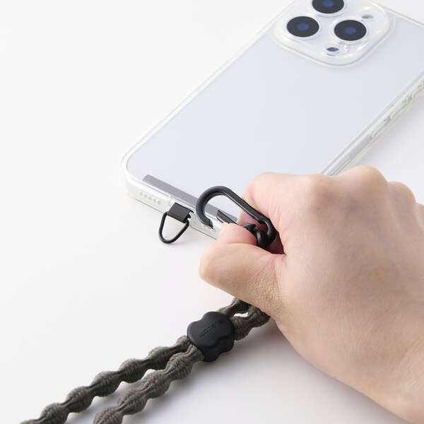 取り外しやすいカラビナ付きで、使わないときはスマートフォンを簡単に取り外せます。