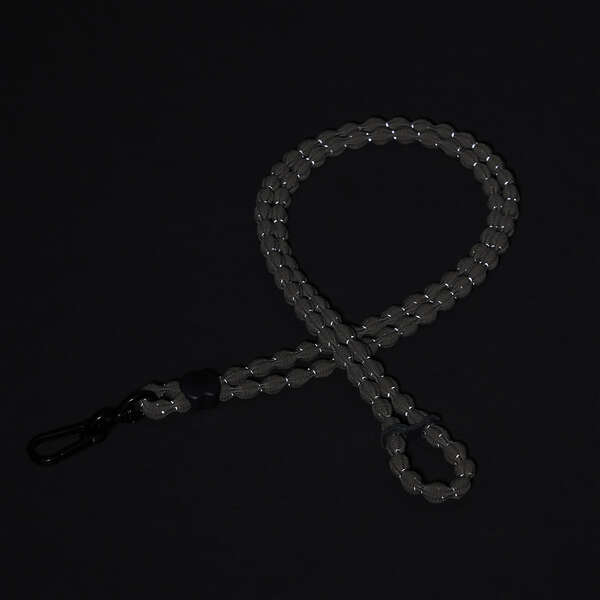 反射糸を使用し、暗い場所では車のライトなどの強い光を反射します。夜間の外出時も安心して使えます。