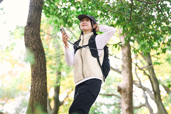 斜め掛けにできるので、両手が空き、普段のお出かけはもちろん、お仕事や旅行などのイベント時にも便利。落下や盗難、紛失防止にも役立ちます。