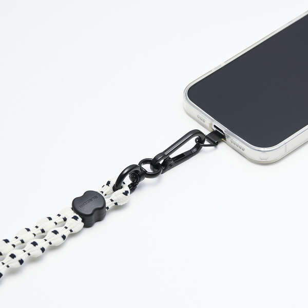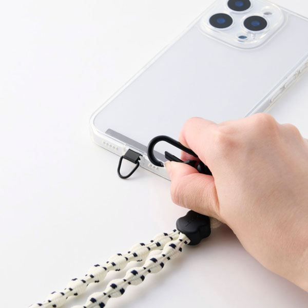取り外しやすいカラビナ付きで、使わないときはスマートフォンを簡単に取り外せます。