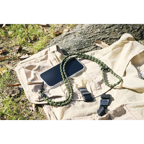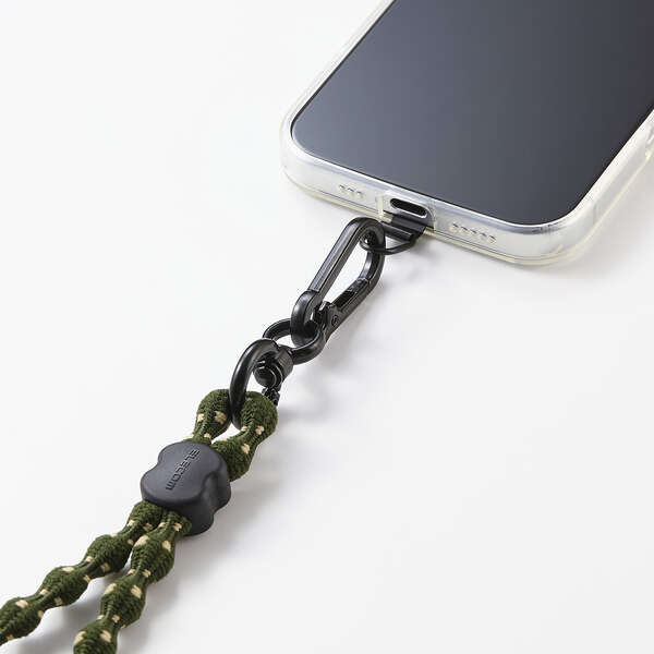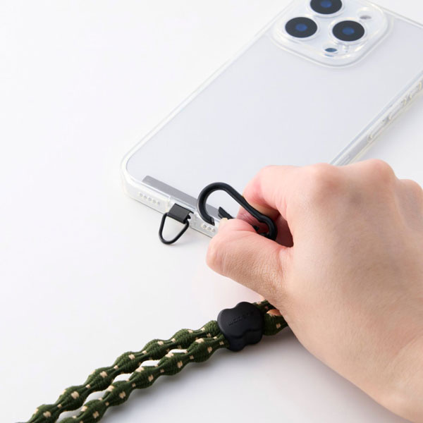 取り外しやすいカラビナ付きで、使わないときはスマートフォンを簡単に取り外せます。
