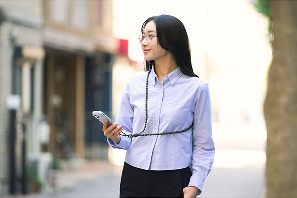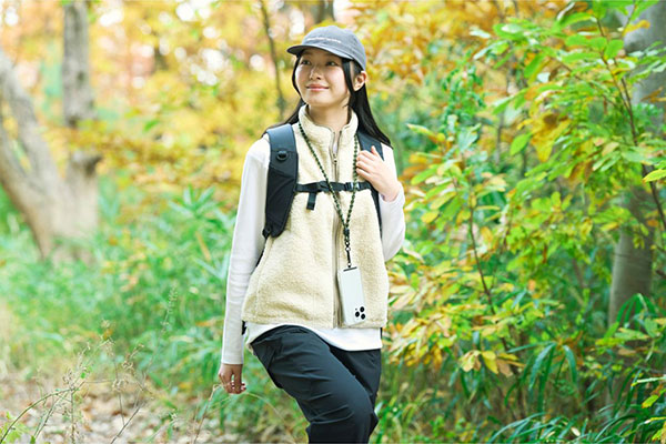 斜め掛けにできるので、両手が空き、普段のお出かけはもちろん、お仕事や旅行などのイベント時にも便利。落下や盗難、紛失防止にも役立ちます。