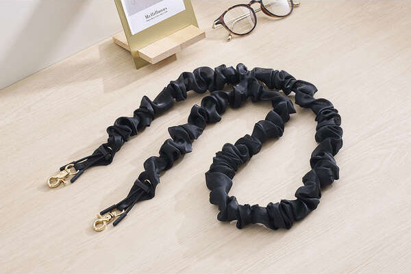 くしゅくしゅとした立体感が目を引く、シンプルながら存在感のあるスマホショルダーストラップです。