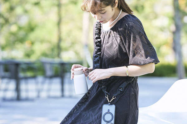 両手が空いて身軽になるので、普段のお出かけはもちろん、お仕事や旅行など、さまざまなシーンで活躍。落下、盗難、紛失防止にもなります。