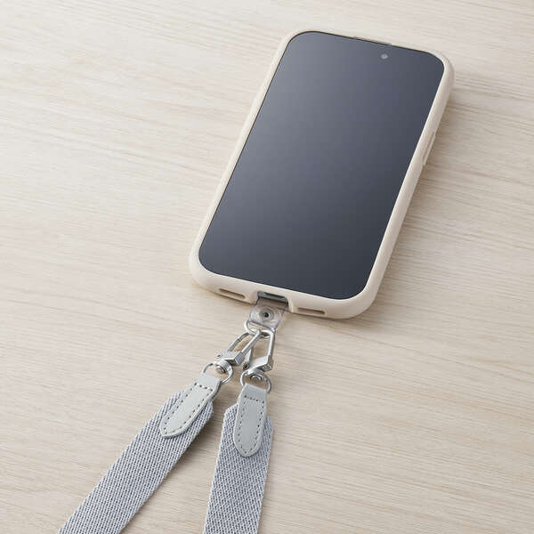 肩から掛けられ、バッグやポケットから取り出さなくてもすぐにスマートフォンの操作ができるフラットタイプのショルダーストラップです。