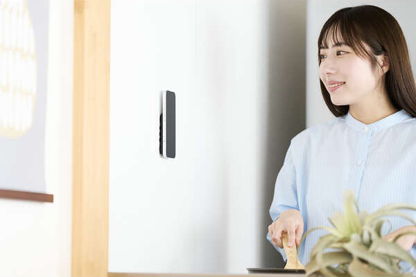 キッチンの壁に貼って、レシピ動画を見ながら料理を楽しめます。